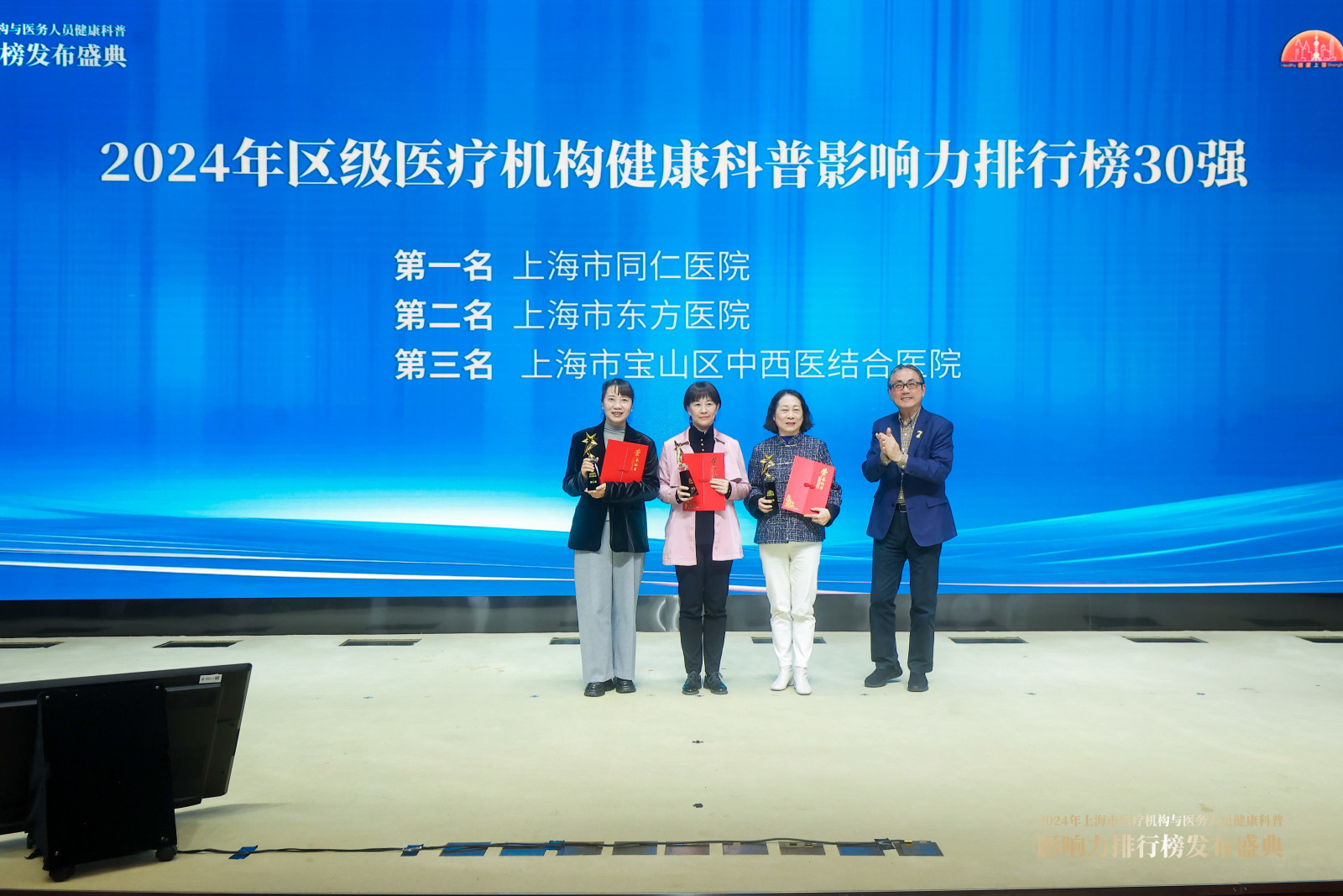 今天,2024年上海市医疗机构与医务人员健康科普影响力排行榜发布盛典在上海开放大学举行。现场发布医疗机构健康科普影响力指数排行榜50强、社区卫生服务中心健康科普影响力指数排行榜50强、医务人员健康科普影响力指数排行榜100强、区级医疗机构健康科普影响力指数排行榜30 强、社区卫生服务中心医务人员健康科普影响力指数排行榜50强,以及抖音、快手、小红书、今日头条、微博、微信公众号、微信视频号、B站等八大新媒体平台的健康科普影响力指数排名前五。2023年全市医疗卫生机构健康科普累计获得百亿阅读数与播放量,超7000万点赞量。