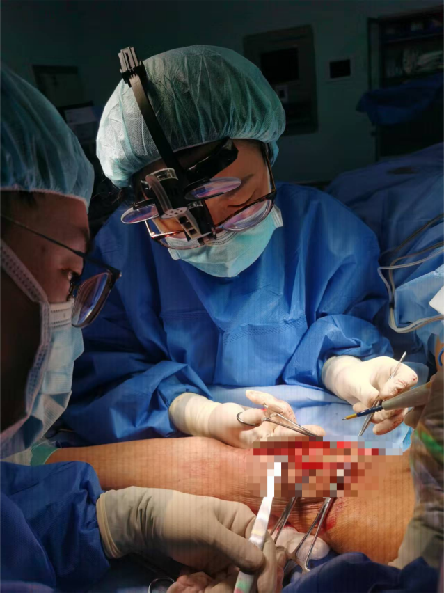 孙先生希望在切除肿瘤的同时,解决皮肤瘢痕与功能障碍问题。针对这一复杂情况,团队制定了“肿瘤根治与组织修复”的双阶段方案:第一阶段进行根治性扩大切除,确保R0级切除后,植入人源化脱细胞真皮,覆盖缺损并诱导血管化;第二阶段,待真皮支架血管化后,实施自体薄层皮片移植,完成创面修复。