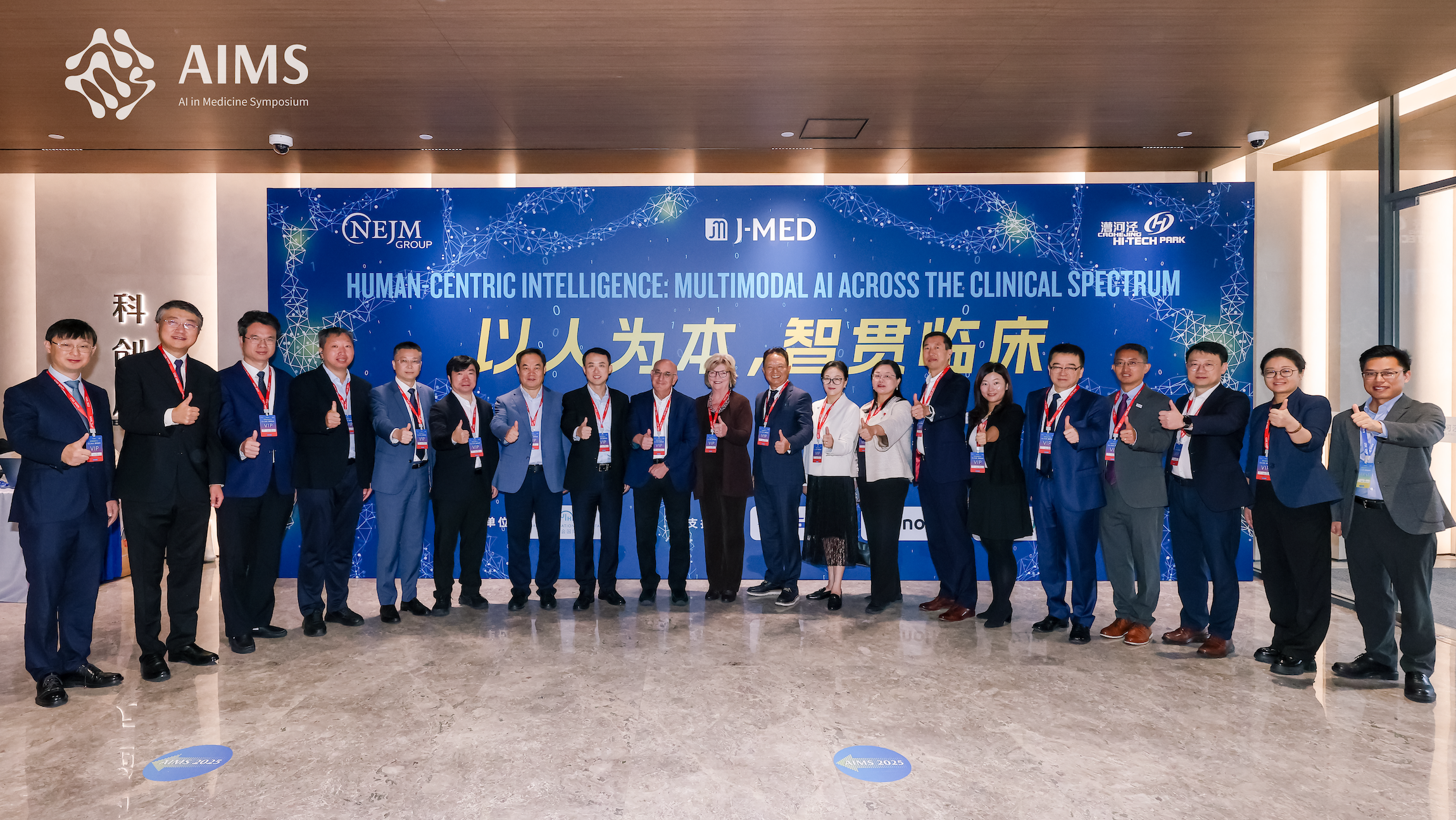 在海量医疗数据不断积累、大模型技术迅速演进的背景下,由《新英格兰医学杂志》出版商NEJM集团,《NEJM医学前沿》出品方嘉会医学研究和教育集团(J-Med)和漕河泾开发区联合主办的AIMS2025,以“以人为本,智贯临床”为主题在上海隆重举行。这是AIMS大会连续第五年的举办。会议共有四个主要议题:构建AI就绪的医疗体系、从模型落地到模型试验、脑机接口的临床前沿、AI驱动的精准研发。