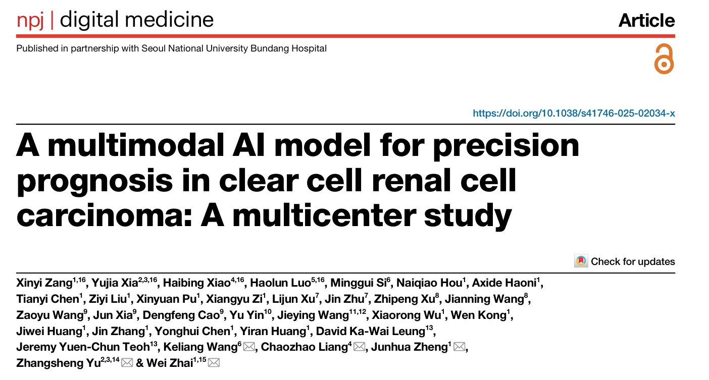 仁济团队研发肾癌多模态AI模型,为预测复发风险与个体化治疗提供支撑